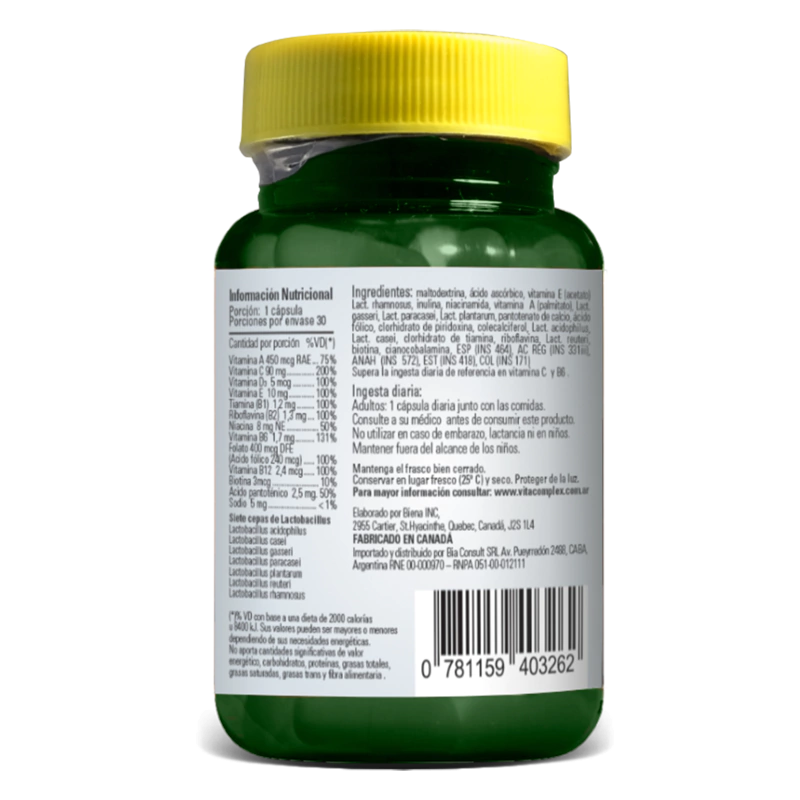 - Cepas probióticas liofilizadas que le confieren estabilidad en el tiempo evitando mantener el suplemento dietario bajo cadena de frío y asegurando su viabilidad (vida latente) hasta ser liberadas en el intestino.